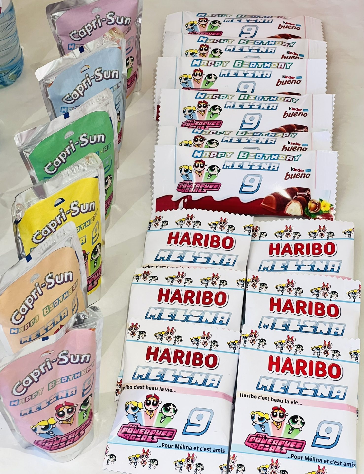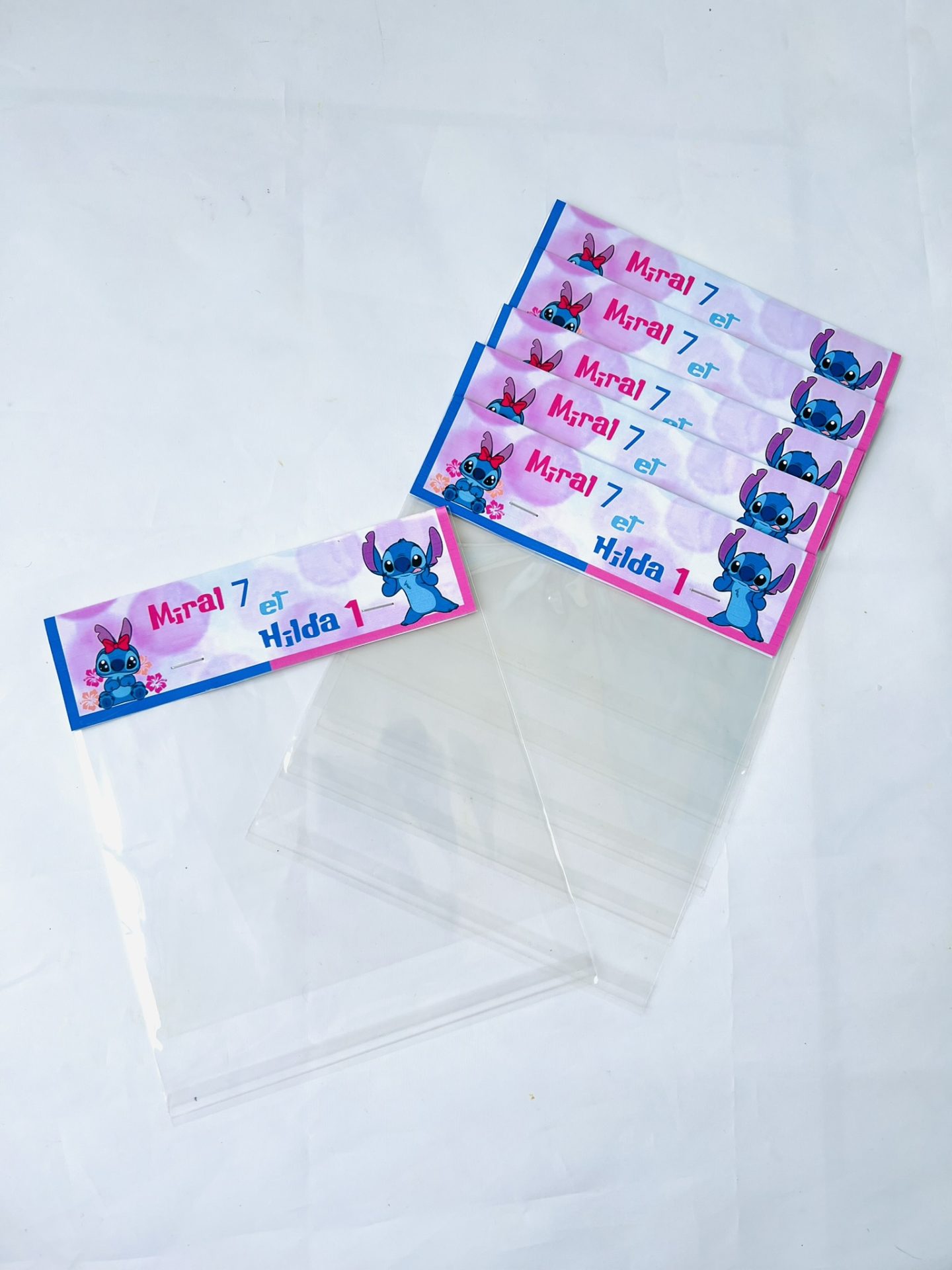 • 6 Sachets  transparents (bonbons, popcorns..) vides et personnalisées.