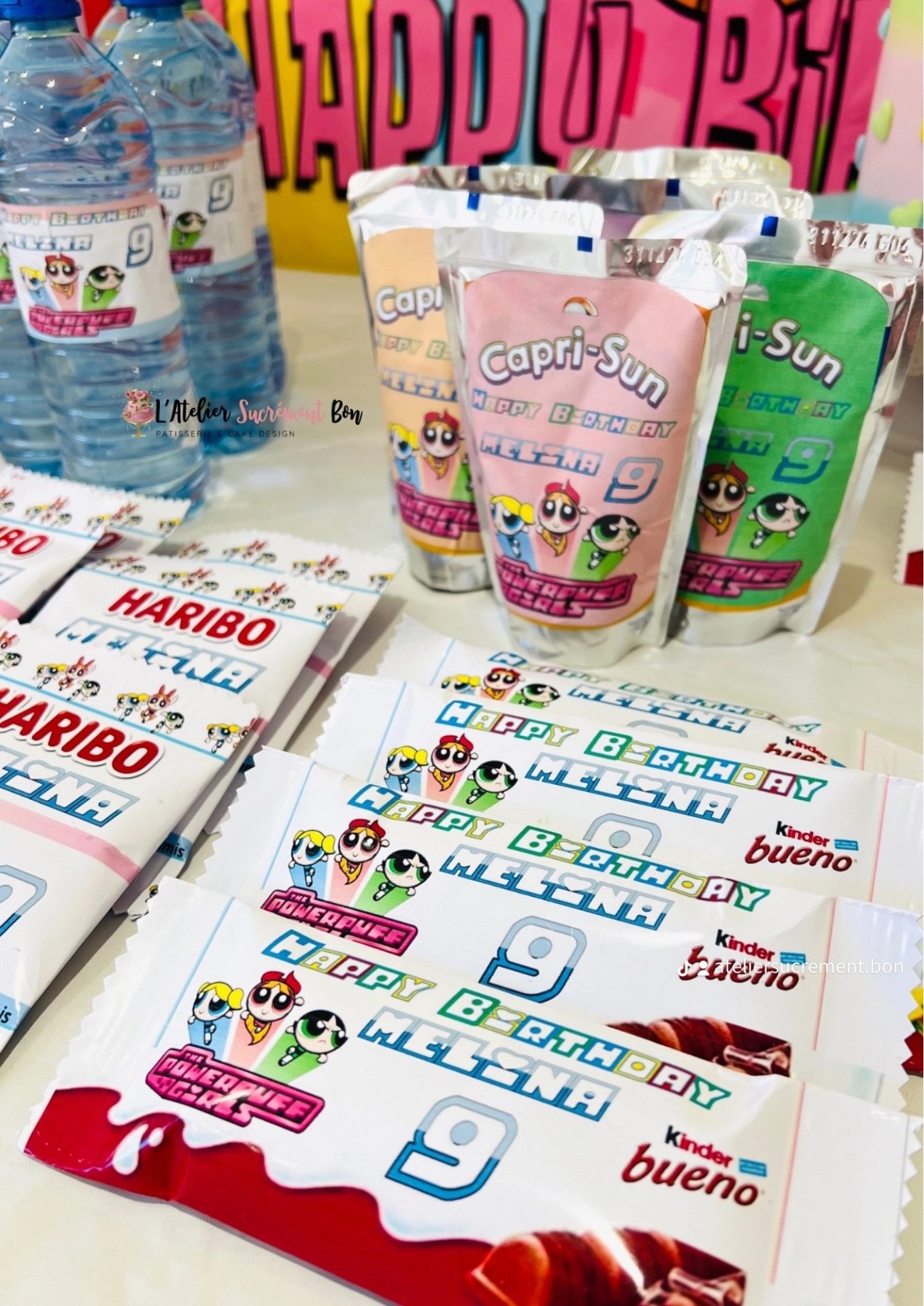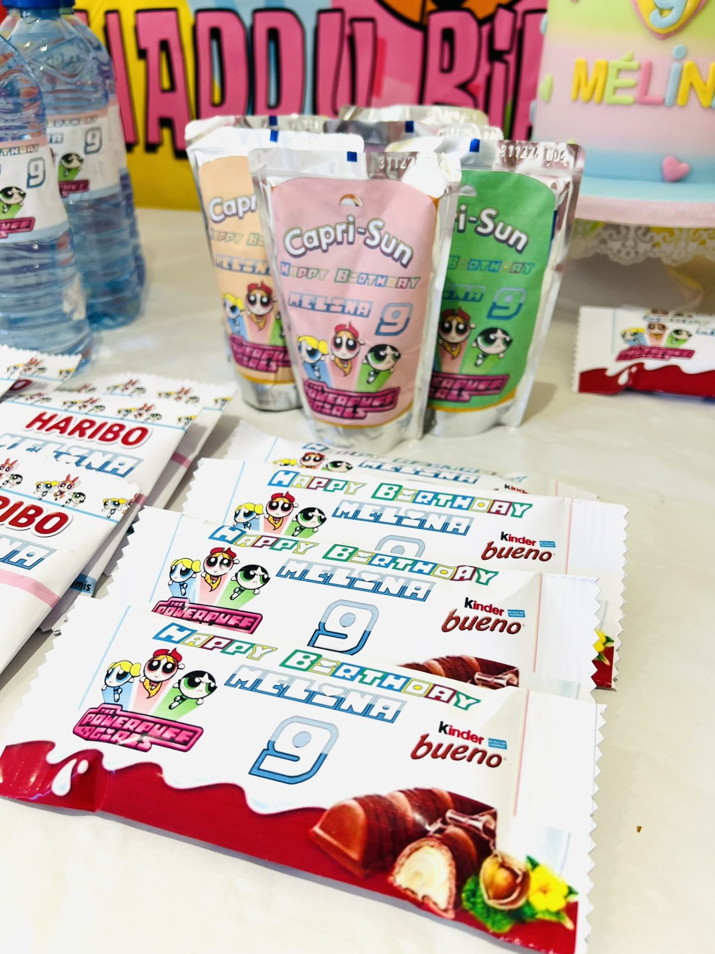 • 6 Étiquettes sachets de bonbons ou gobelets rondes ou carrées
